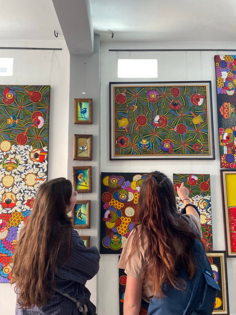 Ese día fui a una clase para hacer las bolsas. Algo que aprendí hoy fue como difícil es para crear una bolsa: para pintar, coser, y seguir muchas instrucciones… descubrí un nuevo respeto para las personas que hacen esto. Es un trabajo complejo. Le toma mucho tiempo para hacer las cosas a mano. Durante la clase, nuestra maestra y traductora nos dijeron que solo usan materiales reciclados para hacer las bolsas. Por ejemplo, mientras pintábamos, teníamos una chatarra de material para limpiar los pinceles. Después de pintar, nos dijeron que estos materiales se utilizarían en el futuro para otros proyectos.
